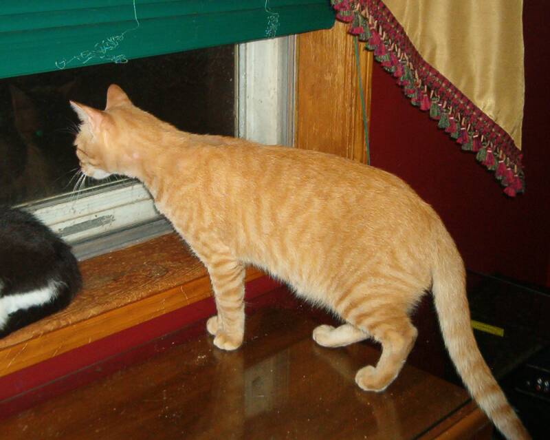 Thor and TJ came from Lafayette,LA with Rio, Fiona and Old Blue. Thor is one of the biggest domestic cats that I have ever seen. When he stretches out, he easily takes up over one third of the couch. Thor is quite friendly and his most favorite things to do are eat and nap on the couch.