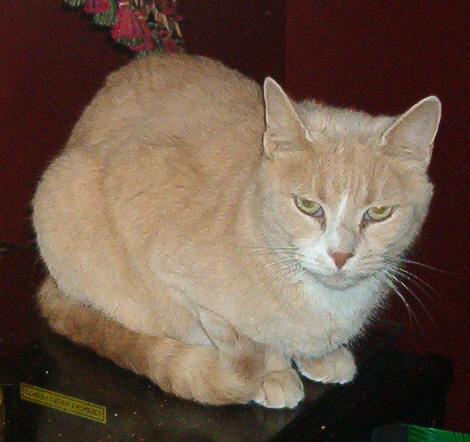 Rio is a very talented cat! The picture above shows him doing his Elvis impression. He is a very large cat but is just a big loveable sweetie-pie. Rio had been here for a couple of days when we recognized his talent for impressions. Actually we thought that he had a pretty serious under-bite and then we realized poor Rio only has about 4 teeth! Fortunately that does not keep him from eating, it just means that he gets more yummy canned food.